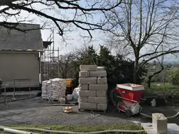 Rénovation avant isolation thermique, gestion de l'humidité, rénovation de la maçonnerie, isolation thermique par béton de chanvre (performances), bétons de chanvre pour l'isolation de maison en pierre Pour son volet énergétique, le projet de cette maison en pierre de Nérac a retenu l'isolation thermique biosourcée par béton de chanvre.