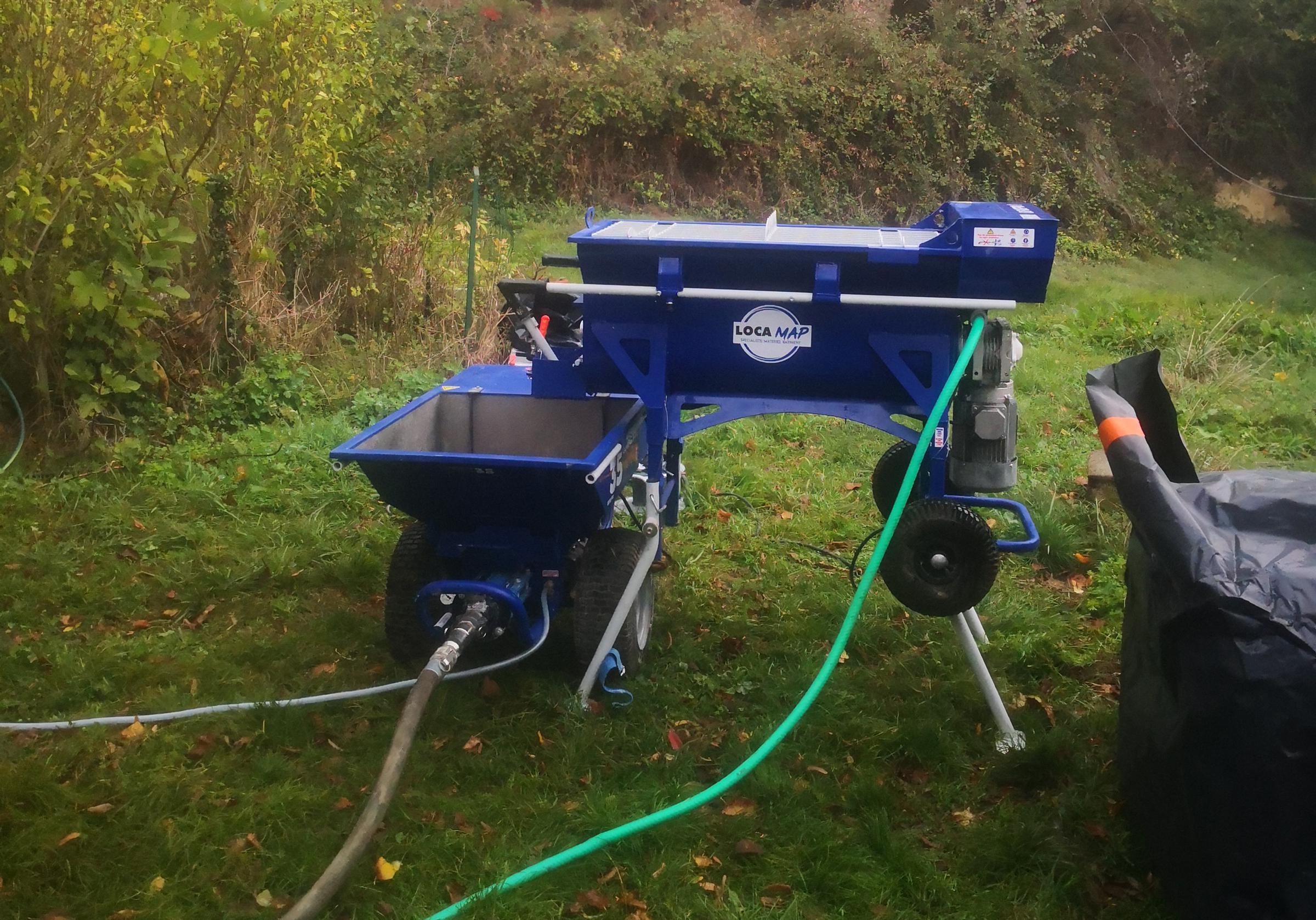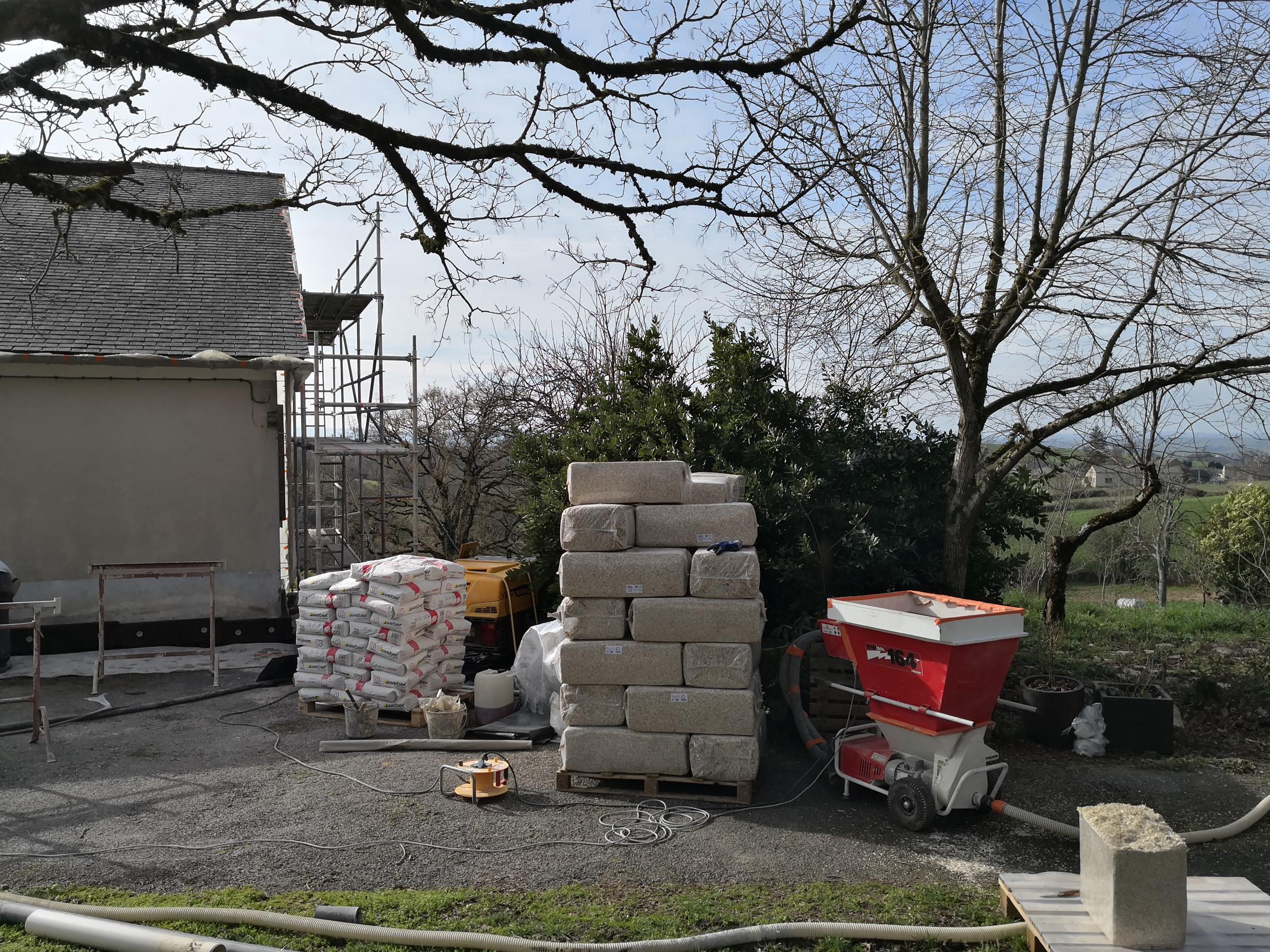 Les charpentes, les menuiseries extérieures sont protégées avant la projection du béton de chanvre.